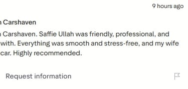 Simply visit the review section on any car’s page and share your experience.